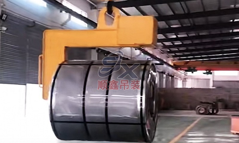 翻轉(zhuǎn)吊具通過(guò)機(jī)械剪力原理,對(duì)立式擺放的卷鋼進(jìn)行單邊抓取,來(lái)完成卷鋼的裝卸,當(dāng)改變重力點(diǎn)時(shí),可以對(duì)卷鋼進(jìn)行翻轉(zhuǎn),作業(yè)時(shí)不傷鋼卷。其吊耳采用加厚處理,焊縫飽滿牢固、延長(zhǎng)使用壽命。